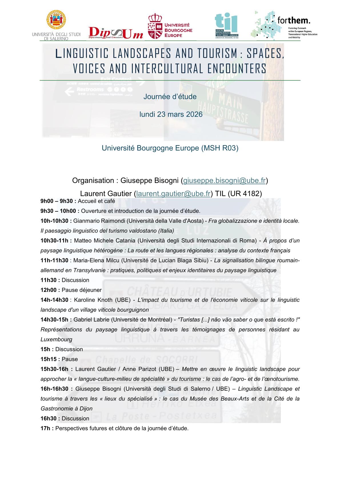 COLLOQUES ET JOURNEES D'ETUDES JE LINGUISTIC LANDSCAPES AND TOURISM : SPACES, VOICES AND INTERCULTURAL ENCOUNTERS